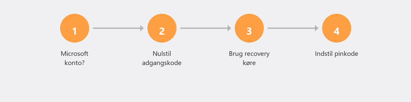 Hvis du har en lokal konto uden en tilknyttet e-mailadresse, skal du bruge sikkerhedsspørgsmål, en anden administratorkonto eller et gendannelsesdrev. Efter nulstilling skal du linke en e-mailadresse til fremtiden.