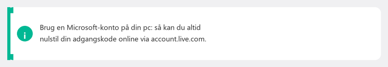 En PIN-kode er en hurtig login-mulighed, der kun virker på den specifikke enhed. Din adgangskode fungerer overalt, hvor du bruger din Microsoft-konto. En PIN-kode er kortere (fire til seks cifre) og derfor hurtigere at indtaste, men giver samme sikkerhed, fordi den kun virker lokalt.