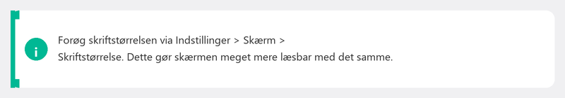 Gå til Indstillinger, Skærm (eller Skærm) og se efter Skriftstørrelse eller Tekststørrelse. Skub bjælken til højre for at gøre teksten større. På iPhones finder du dette under Indstillinger, Skærm og lysstyrke, Tekststørrelse.