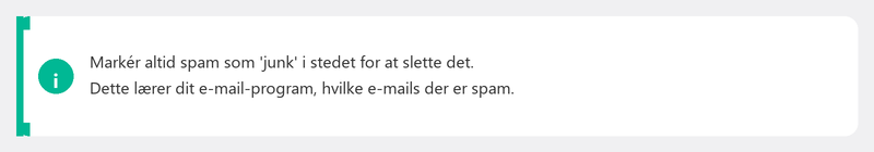 Spamfiltre er gode, men ikke perfekte. Spammere tilpasser konstant deres teknikker. Ved konsekvent at rapportere spam (ikke bare slette det), træner du filteret bedre.