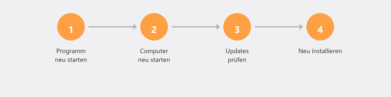 Dieser Artikel gibt Ihnen sechs Schritte, die auf nahezu jedes Programm anwendbar sind. Für spezifische Probleme mit Outlook lesen Sie unseren Artikel über Outlook-Probleme. Für Office-Probleme: Office installieren und Problembehandlung.
