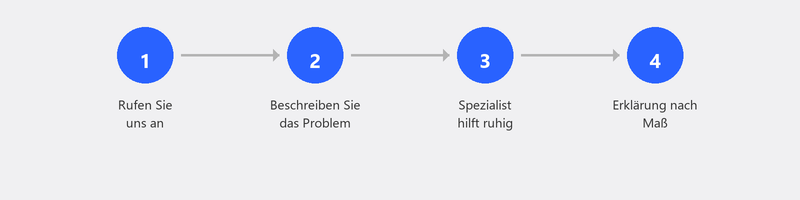 Kein Problem. Wir begleiten Sie telefonisch durch jeden Schritt. Sie brauchen nur eine funktionierende Internetverbindung und das Telefon in der Hand. Den Rest machen wir gemeinsam.