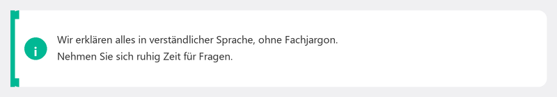 Klare Sprache. Kein Fachjargon, keine Fachbegriffe ohne Erklärung. Wir sprechen so, wie Sie sprechen.