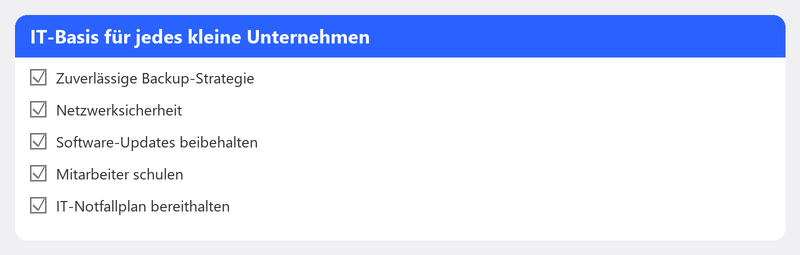 Ab zwei Mitarbeitern ist es bereits sinnvoll. Sobald Unternehmensdaten auf mehreren Geräten liegen und Sie auf Internet und E-Mail angewiesen sind, profitieren Sie von professioneller Verwaltung. Es muss nicht groß oder teuer sein: Ein Basispaket reicht für viele kleine Unternehmen aus.