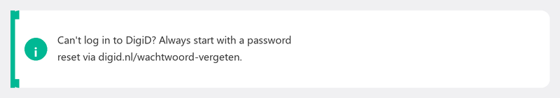 After too many failed login attempts, your DigiD is temporarily blocked. Wait one hour and try again. Still can't get in? Request a new password at digid.nl. Your account remains intact; only the password is reset.
