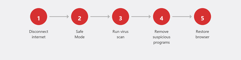 Malware loves to embed itself in your browser. Open your browser settings and check: has the homepage changed? Are there extensions you don't recognize? Is an unfamiliar search engine set as default? Remove anything that doesn't belong and restore the default settings. In Chrome, you can do this via Settings, Reset settings.