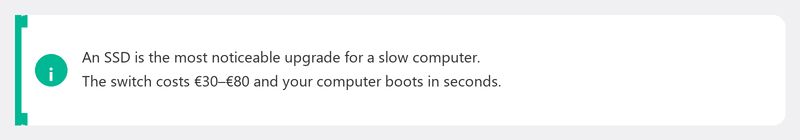 If your computer is more than six to eight years old, has less than 4 GB of RAM, and still runs on a traditional hard drive, buying a new one is often wiser than repairing. Read our buying advice in the article which laptop to buy.