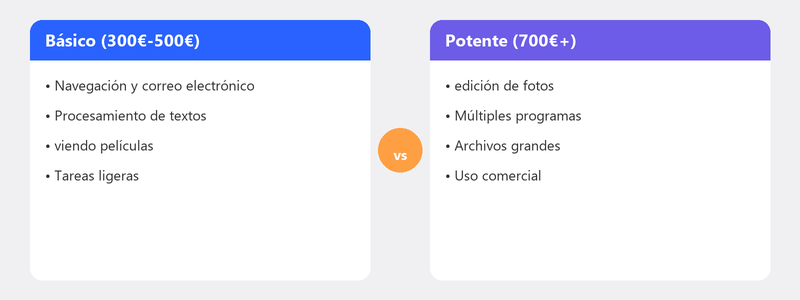 Un consejo honesto: no compre la computadora portátil más barata. Los 100-200 euros extra por un modelo de gama media se amortizan con años de disfrute extra.