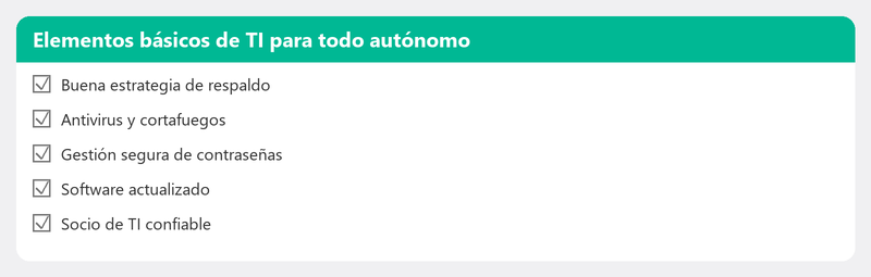 Como autónomo, eres tu propio director, contador, comercializador y departamento de TI al mismo tiempo. Eso funciona bien hasta que su computadora portátil falla en un día límite. O hasta que descubra que no tiene una copia de seguridad de la base de datos de su cliente. En ese momento, se da cuenta de que el soporte de TI no es un lujo, sino una necesidad.