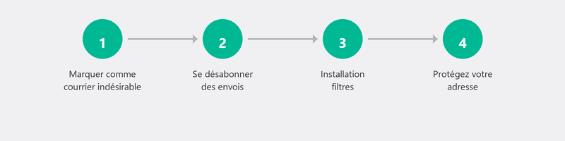 La meilleure prévention : gardez votre adresse e-mail principale propre en l'utilisant uniquement pour des contacts personnels. Créez une deuxième adresse gratuite (une adresse Gmail ou Outlook.com) pour les boutiques en ligne, les inscriptions en ligne, les cadeaux et les newsletters. Tous les spams sont envoyés à cette adresse : votre véritable boîte de réception reste propre.