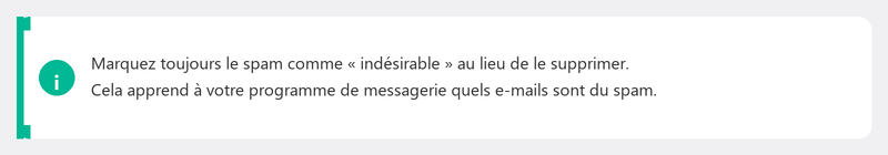 Attention : n'utilisez pas le lien de désabonnement dans de vrais spams provenant d'expéditeurs inconnus. Cela pourrait en fait confirmer que votre adresse est active, ce qui entraînerait davantage de spam. En cas de doute : marquez comme spam et supprimez.