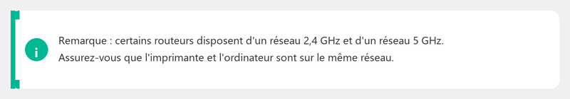 Éteignez l'imprimante et votre ordinateur, puis rallumez-les. Vérifiez que l'imprimante est sur le même réseau WiFi que votre ordinateur (attention : certains routeurs ont un réseau 2,4 GHz et un réseau 5 GHz avec des noms différents). Supprimez l'imprimante de Windows (Paramètres, Imprimantes et scanners, cliquez sur l'imprimante, Supprimer) et ajoutez-la à nouveau.