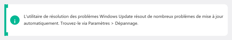 Windows dispose d'un outil intégré qui détecte et répare automatiquement les problèmes de mise à jour courants. Accédez à Paramètres, Système, Dépannage, Autres dépanneurs, puis cliquez sur Exécuter à côté de Windows Update. L'outil vérifie votre système et essaie de résoudre automatiquement les problèmes.