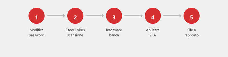 Chiama subito la tua banca. La maggior parte delle banche dispone di un numero verde antifrode attivo 24 ore su 24, 7 giorni su 7. Blocca la tua carta bancaria, controlla le transazioni recenti e chiedi alla banca di annullare le transazioni sospette. Quindi presentare una denuncia alla polizia (online sul sito della polizia o alla stazione). Salva tutte le prove: screenshot, e-mail, panoramiche delle transazioni.