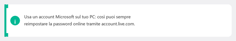 Se disponi di un account locale senza un indirizzo email collegato, avrai bisogno di domande di sicurezza, di un altro account amministratore o di un'unità di ripristino. Dopo il ripristino, collega un indirizzo email per il futuro.
