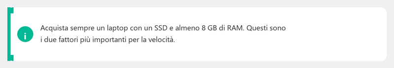 - Archiviazione (SSD). I laptop moderni hanno un SSD. 256 GB sono pochi ma fattibili. 512 GB sono comodi. 1 TB se archivi molte foto, video o giochi.