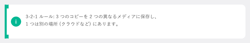 専門家は 3-2-1 ルールを使用します。つまり、ファイルの 3 つのコピー (オリジナルと 2 つのバックアップ) を 2 つの異なる種類のメディアに保存し、少なくとも 1 つは別の場所 (クラウドなど) に保管します。これにより、事実上あらゆるシナリオから保護されます。