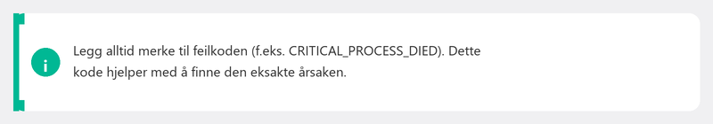 Feilkoden (stoppkoden) indikerer hvilken del av Windows som forårsaket problemet. Hver kode refererer til en bestemt type feil. Å slå opp koden hjelper deg med å finne årsaken. De vanligste peker på driver- eller minnerelaterte problemer.