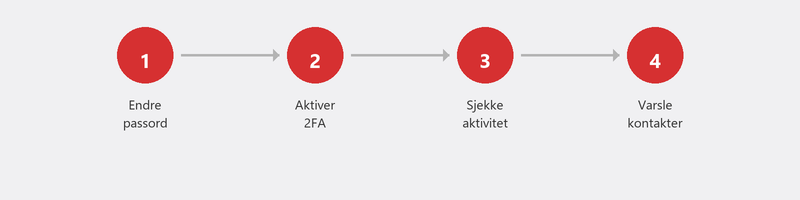 Får du panikk og vet ikke hvor du skal begynne? Ring oss. Vi veileder deg gjennom hele prosessen: tilbakestilling av passord, oppsett av tofaktorautentisering, fjerning av mistenkelig aktivitet og skanning av datamaskinen. Kontoen din vil være sikker igjen.
