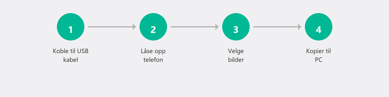 Koble telefonen til datamaskinen med en USB-kabel. Telefonen din kan be om tillatelse: velg Filoverføring (eller MTP). Åpne File Explorer på datamaskinen din, og du vil se telefonen som en enhet. Naviger til DCIM-mappen (det er der bildene dine er). Velg bildene du vil overføre og kopier dem til en mappe på datamaskinen.