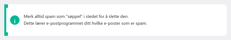 Spamfiltre er bra, men ikke perfekte. Spammere tilpasser stadig teknikkene sine. Ved konsekvent å rapportere spam (ikke bare slette det), trener du filteret bedre.