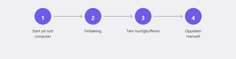 En omstart sletter midlertidige filer og avslutter prosesser som kan blokkere oppdateringen. Etter omstart går du til Innstillinger, Windows Update og klikker på Se etter oppdateringer. La oppdateringen kjøre igjen.