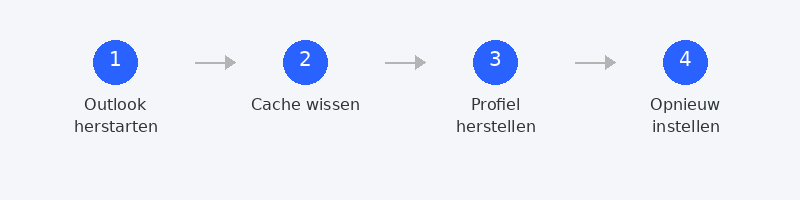 Helpt Veilige modus niet? Dan kan je Outlook-profiel beschadigd zijn. Ga naar Configuratiescherm, Mail, Profielen weergeven. Maak een nieuw profiel aan, voeg je e-mailaccount opnieuw toe, en stel het nieuwe profiel in als standaard.