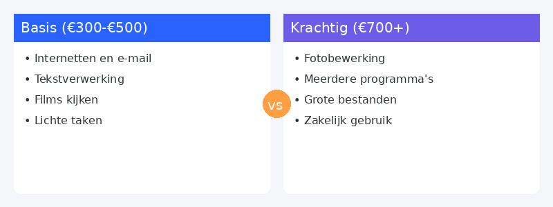 - Onder €400: Basisgebruik. E-mail, internet, simpele tekstverwerking.