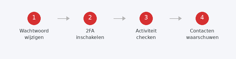 Ben je in paniek en weet je niet waar je moet beginnen? Bel ons. We begeleiden je door het hele proces: wachtwoord resetten, tweestapsverificatie instellen, verdachte activiteit verwijderen, en je computer scannen. Je account is daarna weer veilig.