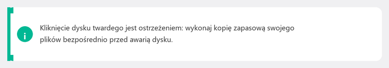 Jest to sygnał ostrzegawczy. Tradycyjny dysk twardy (HDD) zawiera obracające się talerze i ramię odczytujące. Rytmiczne tykanie lub klikanie może oznaczać uszkodzenie ramienia odczytującego i zbliżającą się awarię napędu.