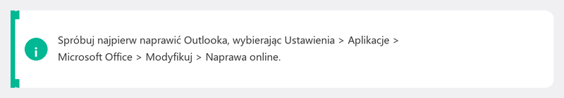 Przeczytaj nasz artykuł na tematkonfiguracja poczty e-mailjeśli chcesz całkowicie przekonfigurować swoje konto, lub nasz artykuł na tematinstalowanie pakietu Officejeśli podejrzewasz, że cała instalacja pakietu Office jest uszkodzona.