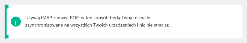 IMAP przechowuje Twoje e-maile na serwerze i synchronizuje je ze wszystkimi Twoimi urządzeniami. POP3 pobiera e-maile na jedno urządzenie i usuwa je z serwera. Dla większości ludzi protokół IMAP jest lepszym wyborem, ponieważ dostęp do poczty e-mail można uzyskać z dowolnego miejsca.