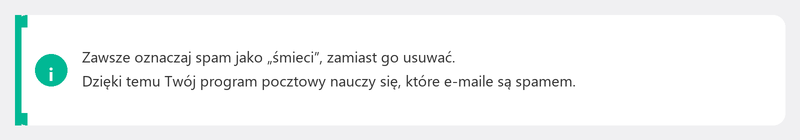 Filtry antyspamowe są dobre, ale nie doskonałe. Spamerzy stale dostosowują swoje techniki. Konsekwentne zgłaszanie spamu (a nie tylko jego usuwanie) pozwala lepiej wyszkolić filtr.