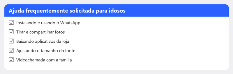 Um smartphone ou tablet pode tornar sua vida mais agradável. Manter contato com filhos e netos por meio de videochamadas, compartilhar fotos em um aplicativo familiar ou simplesmente ler as notícias em uma tela maior. Mas configurar e usar tal dispositivo nem sempre é simples. Tudo bem. Teremos prazer em ajudá-lo, com calma e no seu ritmo.