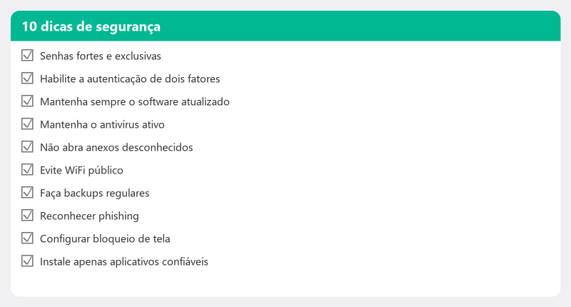 Seu computador contém toda a sua vida. Dados bancários, senhas, fotos pessoais, documentos de trabalho, informações médicas. No entanto, a maioria das pessoas protege a sua vida digital com menos cuidado do que a sua porta de entrada. Com estes dez passos, você se protegerá contra as ameaças digitais mais comuns. Nenhuma das etapas é difícil e juntas fazem uma enorme diferença.