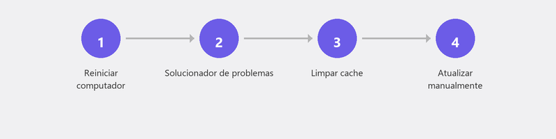 Uma reinicialização limpa os arquivos temporários e encerra processos que podem estar bloqueando a atualização. Após reiniciar, vá para Configurações, Windows Update e clique em Verificar atualizações. Deixe a atualização ser executada novamente.