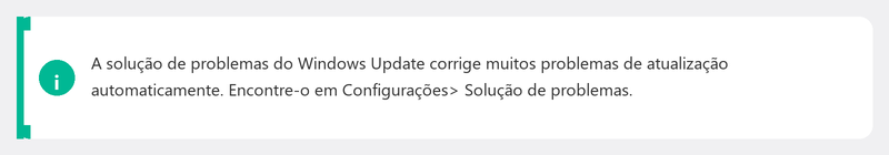 O Windows possui uma ferramenta integrada que detecta e repara automaticamente problemas comuns de atualização. Vá para Configurações, Sistema, Solução de problemas, Outros solucionadores de problemas e clique em Executar ao lado do Windows Update. A ferramenta verifica seu sistema e tenta corrigir os problemas automaticamente.