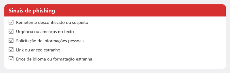 - Mensagem inesperada. Você recebe um e-mail sobre um pacote que não esperava, uma fatura que não reconhece ou uma conta que não possui. Essa é a primeira bandeira vermelha.