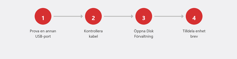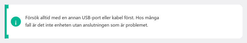 Vanligaste orsakerna: dålig USB-kabel eller -port, föråldrad drivrutin, otillräcklig ström (med enheter utan egen strömförsörjning) eller en skadad partitionstabell. I det senare fallet finns ofta uppgifterna kvar.