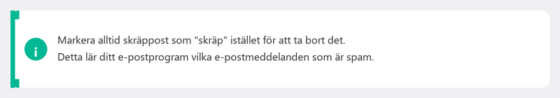 Spamfilter är bra men inte perfekta. Spammare anpassar ständigt sina tekniker. Genom att konsekvent rapportera spam (inte bara ta bort det) tränar du filtret bättre.