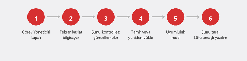 Bu makalede hemen hemen her program için geçerli olan altı adım verilmektedir. Outlook ile ilgili belirli sorunlar için Outlook sorunları hakkındaki makalemizi okuyun. Office sorunları için: Office kurulumu ve sorun giderme.